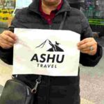 マナス空港の到着ゲートにて、アシュトラベルの案内を持ったドライバーがお迎え
