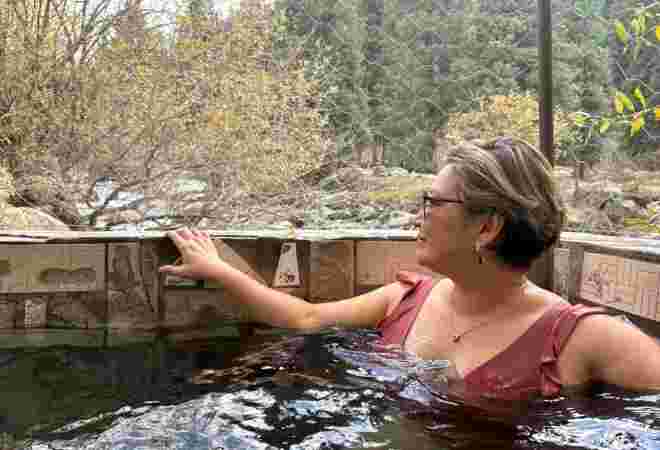 乗馬2日目の午後は、山々に囲まれた谷間の天然温泉へ。体を動かした後の疲れをじっくり癒やし、心身がまるごとリセットされる時間です。