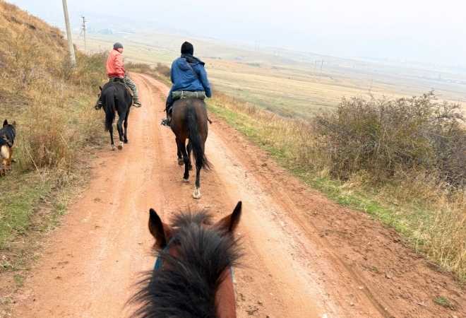 • 天山山脈を望む絶景乗馬を2回楽しむ
