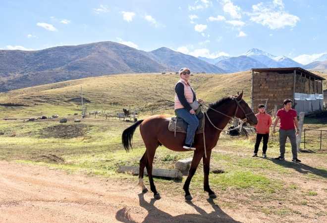 マナス空港でのお迎えから最終日の見送りまで、すべておまかせ。言葉がわかるともっとディープな旅へ。乗馬初心者の方でも安心してご参加いただけます。