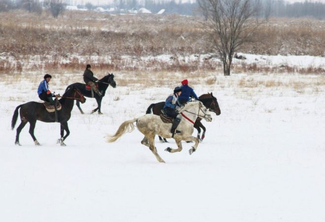 • 冬のキルギスでしか味わえない雪原乗馬